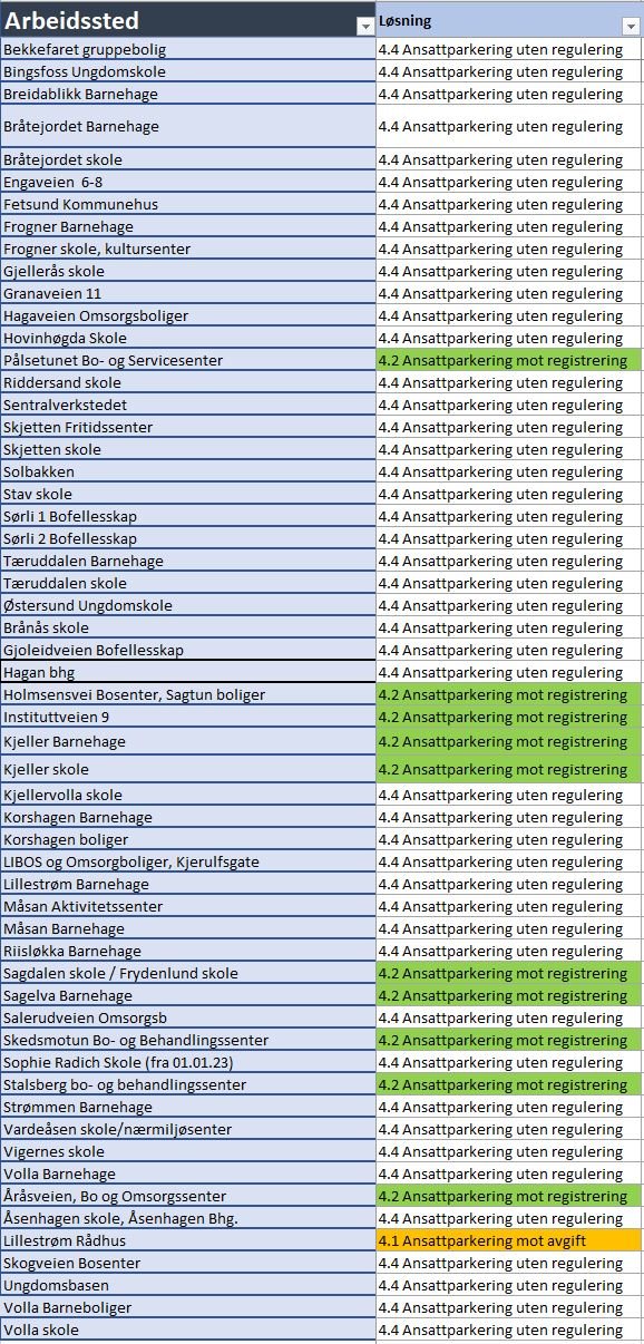 Vår hovedintensjon er at de fleste ansattplasser blir uregulert fra 1. april. Der blir skiltene tatt ned. De steder som beholder registrering med kr 0,- for parkeringstillatelse vil opprettholde dette i felleskap med ansvarlig på stedet.